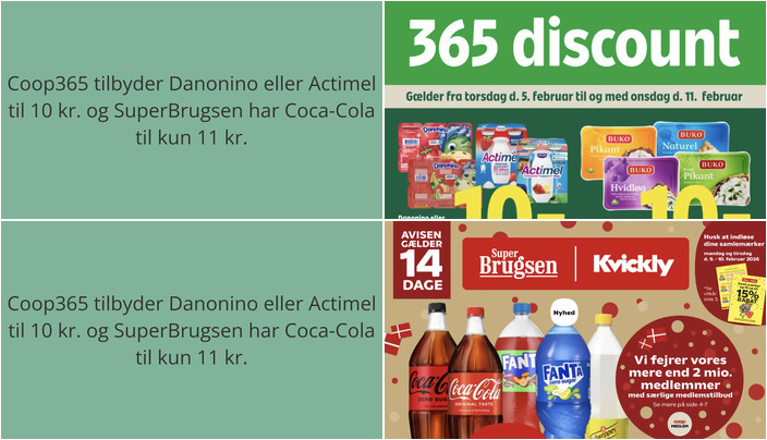 Coop365 tilbyder Danonino eller Actimel til en skarp pris på kun 10 kr. pr. stk. Vægten varierer mellem 300-400 gram, og tilbuddet er gyldigt fra torsdag den 5. februar til onsdag den 11. februar.