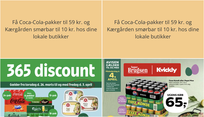 Få Coca-Cola-pakker til 59 kr. og Kærgården smørbar til 10 kr. hos dine lokale butikker